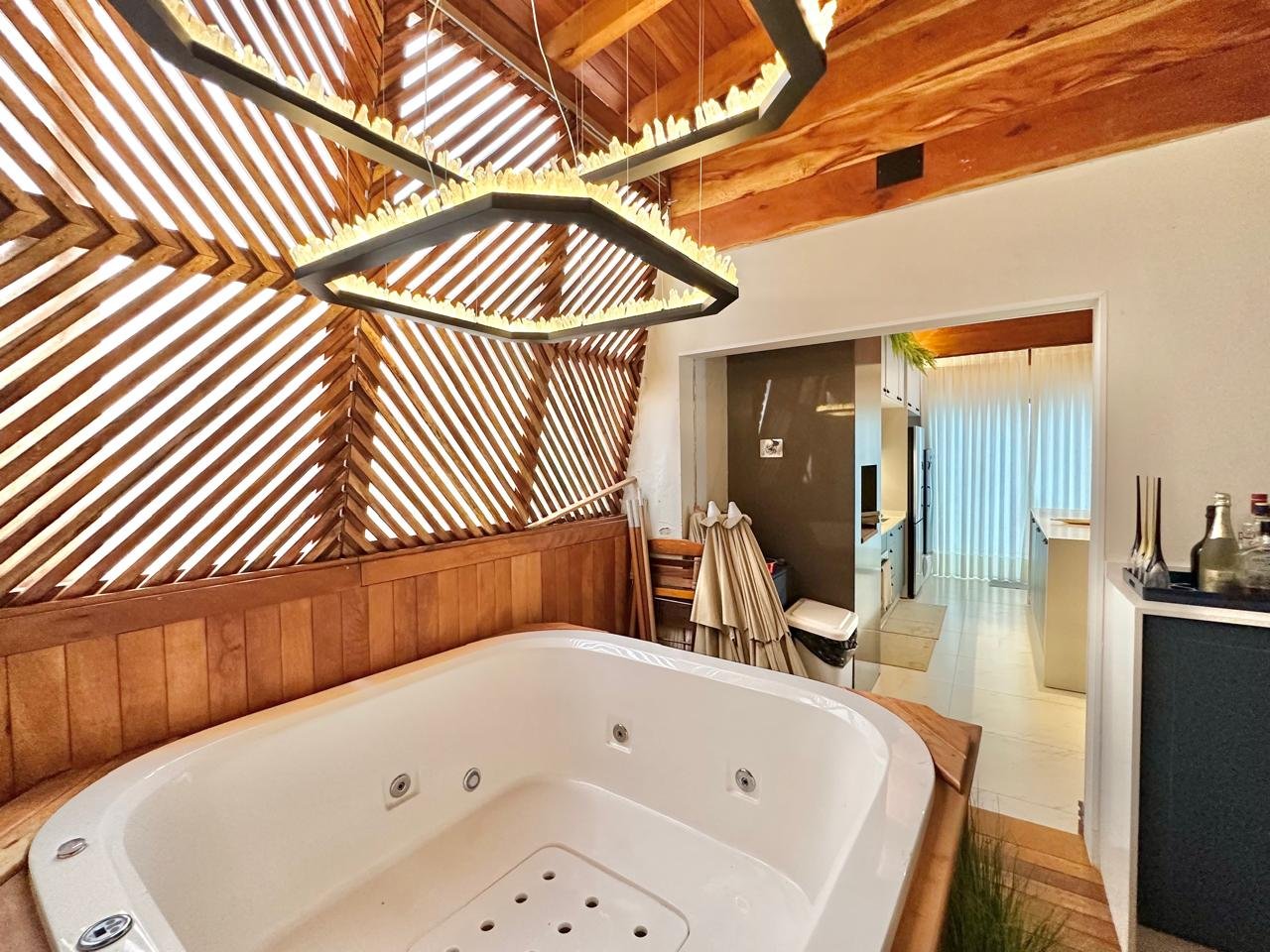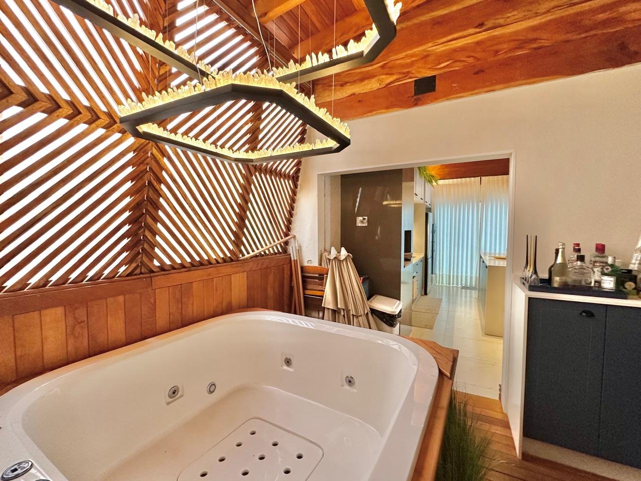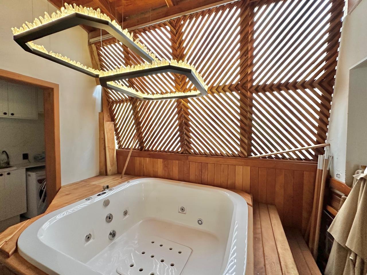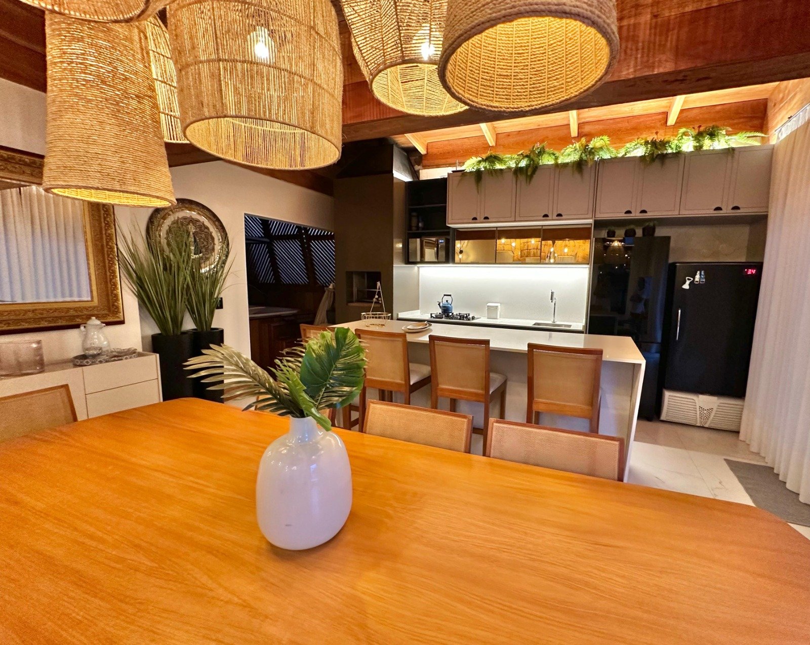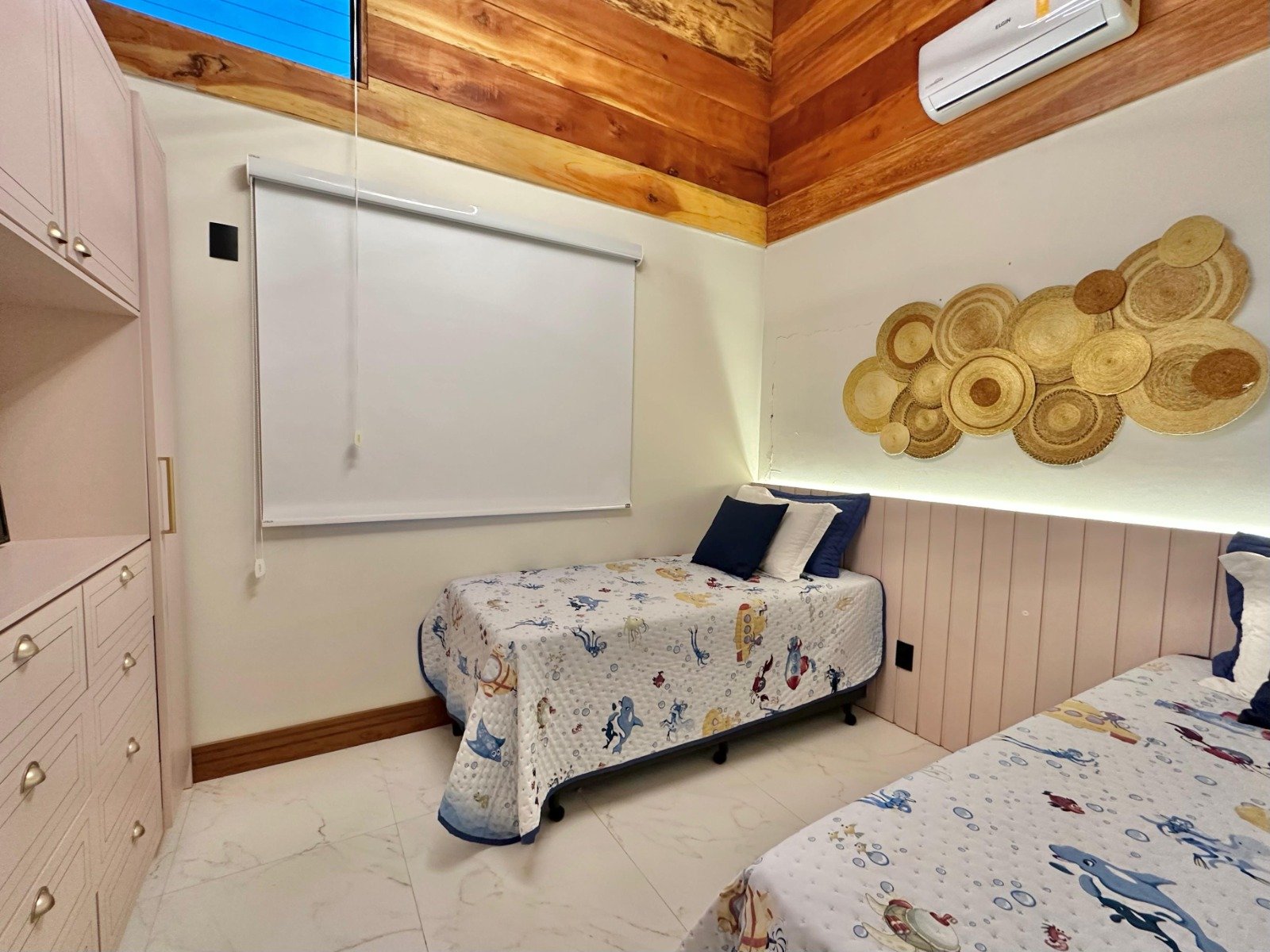 Temos 3 quartos confortáveis, cada um projetado para garantir uma noite de sono tranquila; 2 quartos possuem uma cama de casal sendo 1 suíte podendo acessar a área com jacuzzi; o segundo quarto possui 2 camas de solteiro sem 1 cama auxiliar (capacidade para 3 pessoas)