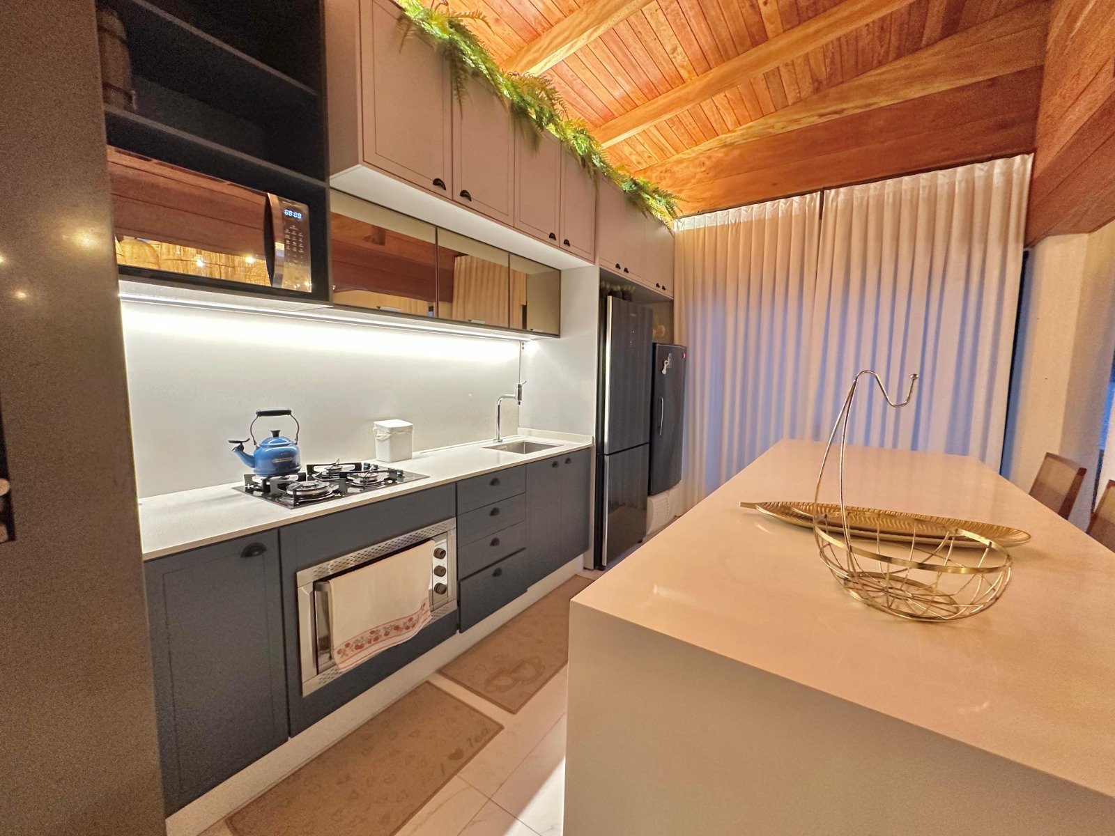 A cozinha está totalmente equipada com tudo o que você precisa para preparar refeições deliciosas.