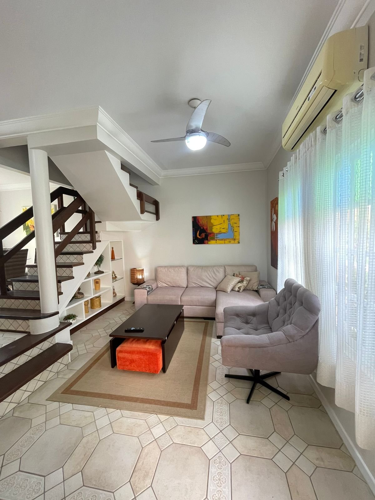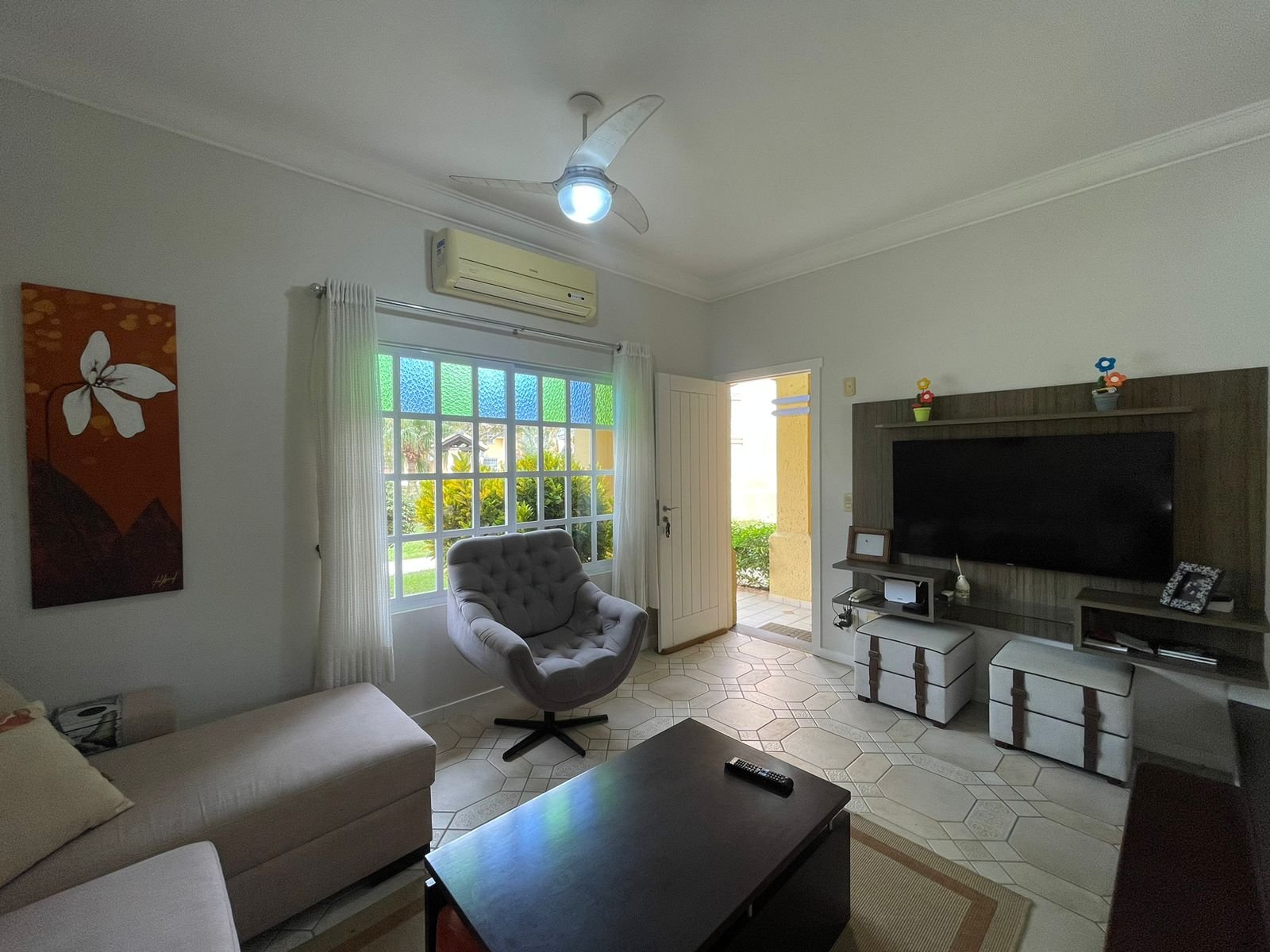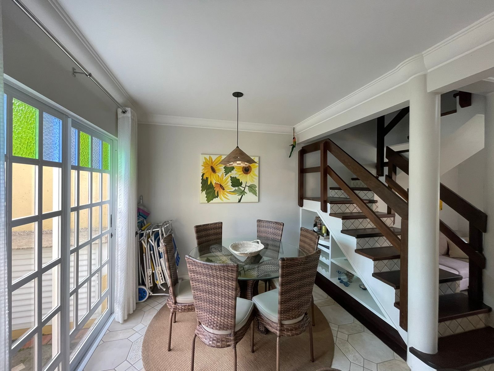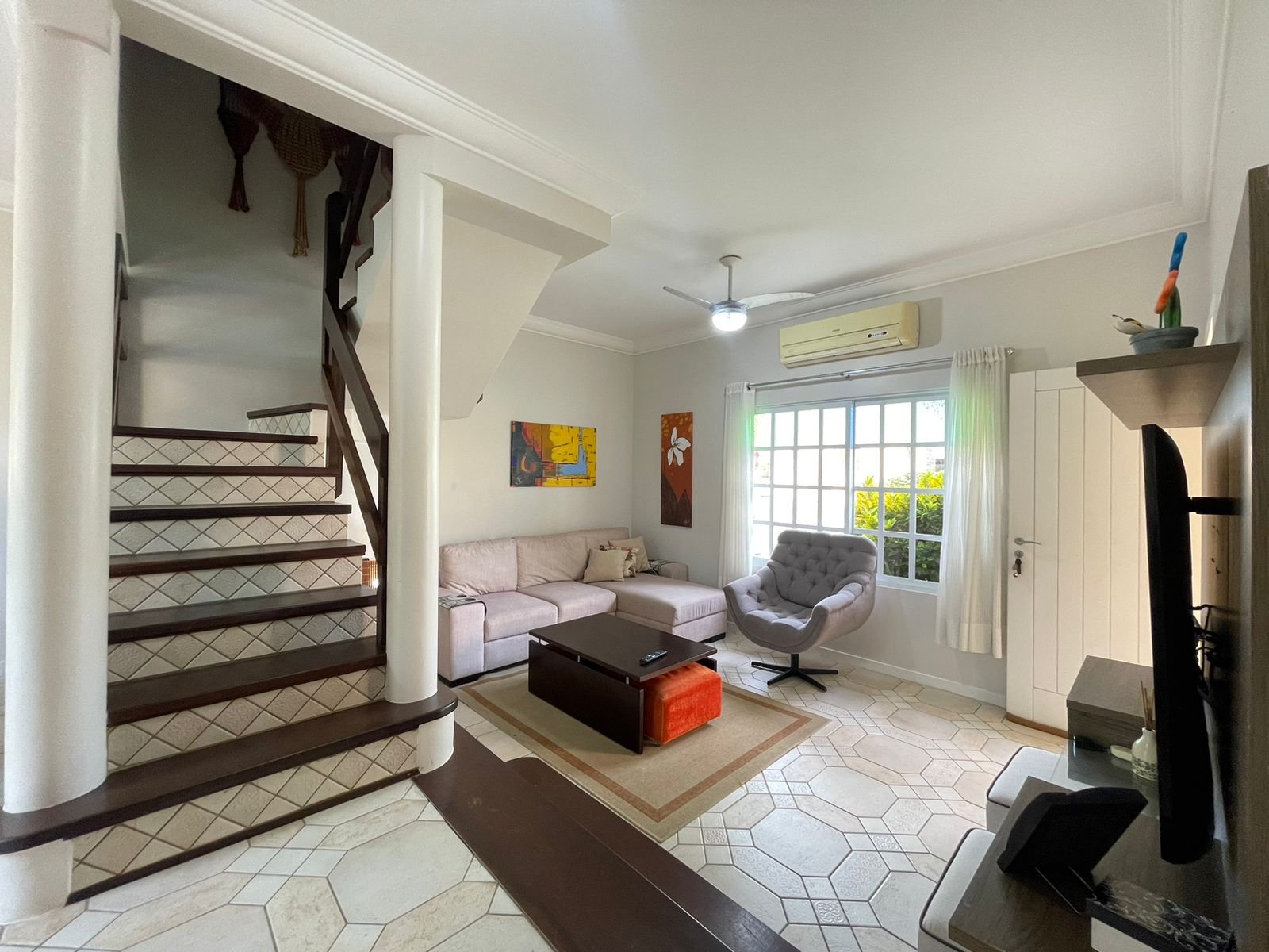 Ampla sala de estar, sala de jantar, lavabo, espaço gourmet com churrasqueira a carvão, cozinha, área de serviço, 3 amplos dormitórios, sendo 1 suíte com sacada e banheiro social, varanda com jardim e quintal;